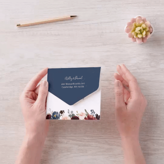 14. Navy Burgundy Botanical Floral Wedding Photo All In One Invitation
