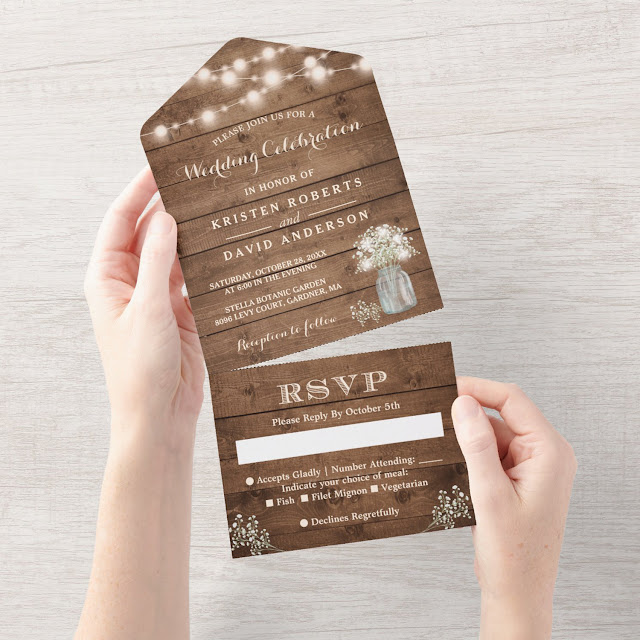 2. Rustic Baby's Breath String Lights Wedding All In One Invitation